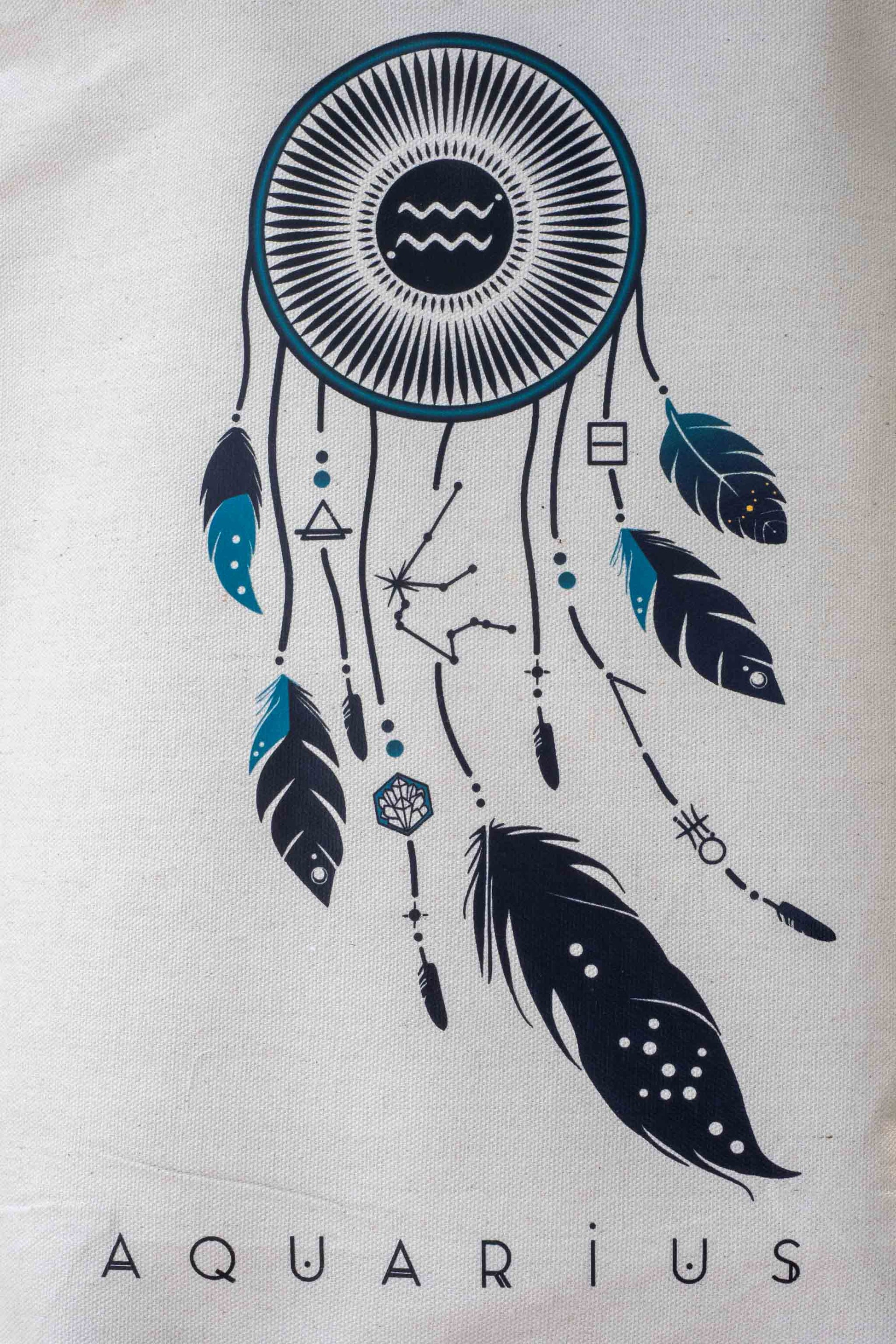TOTE BAG VIBE ACUARIO – Bolsa de algodón orgánico con atrapasueños del zodíaco