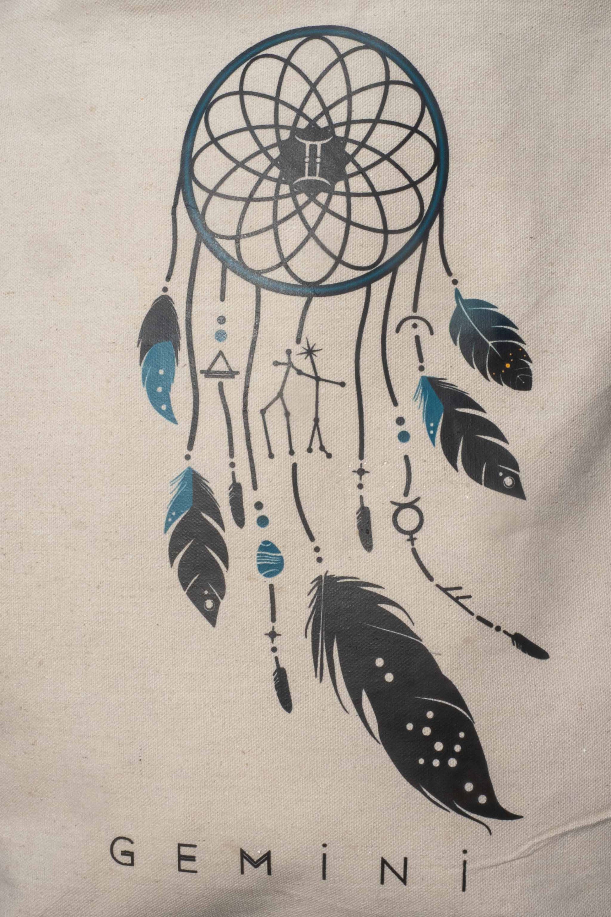 TOTE BAG VIBE GÉMINIS – Bolsa de algodón orgánico con atrapasueños del zodíaco