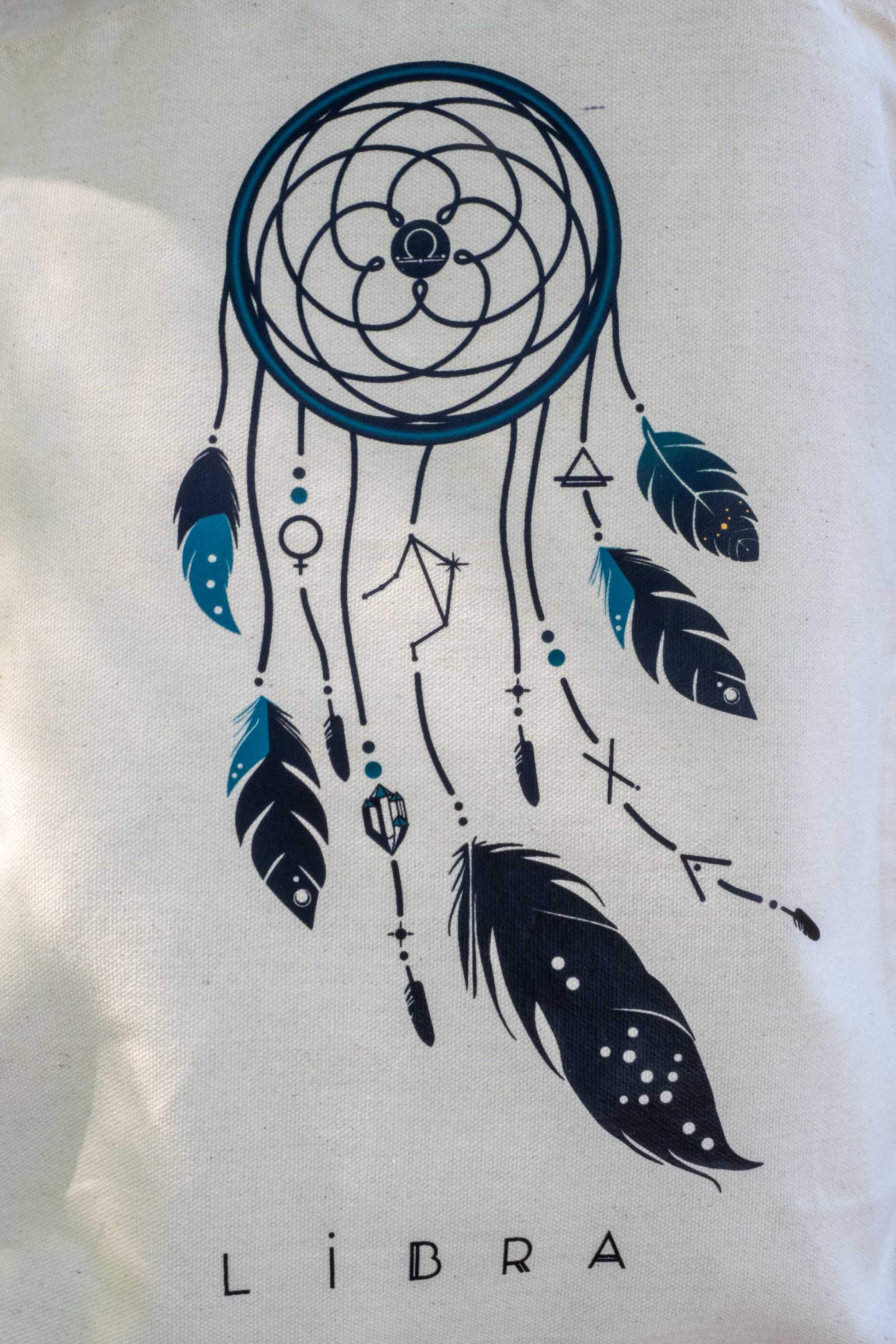 TOTE BAG VIBE LIBRA – Bolsa de algodón orgánico con atrapasueños del zodíaco