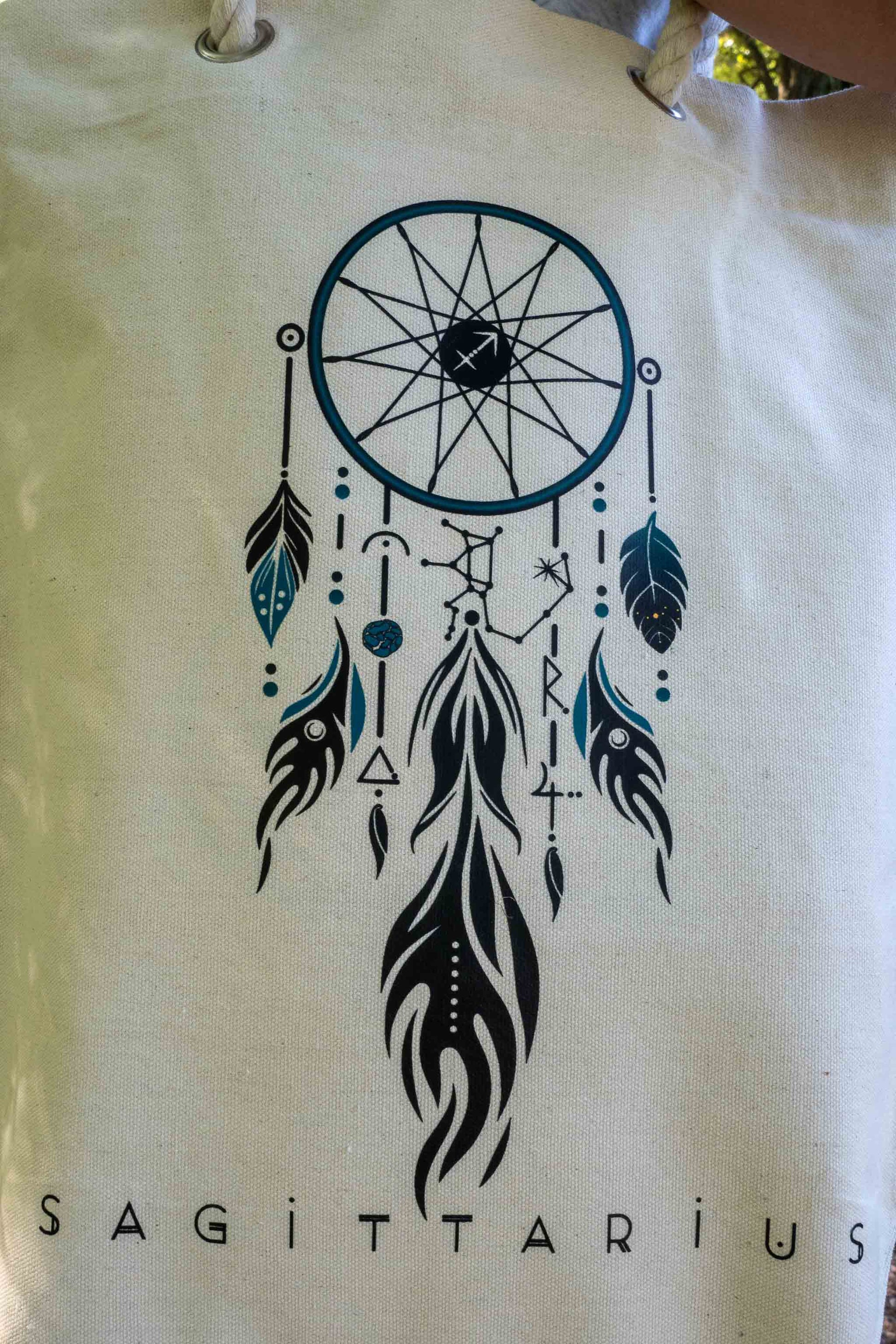 TOTE BAG VIBE SAGITARIO – Bolsa de algodón orgánico con atrapasueños del zodíaco